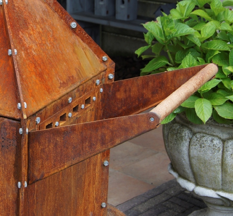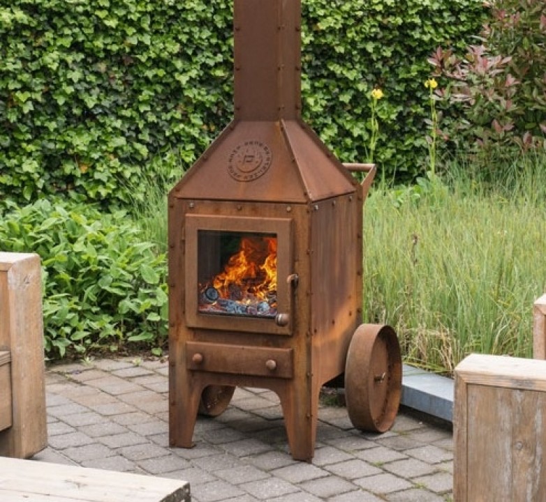 Het model BIJUGA is een oerdegelijke stijlvolle houtkachel van Cor-Ten staal voor gebruik buiten. Het opvallende tijdloze ontwerp combineert strakke lijnen en vlakken met industriële accenten. Zo is het plaatmateriaal op de verbindingsnaden naar buiten gevouwen en zijn alle bouten en moeren zichtbaar. De hardhouten merbau onderdelen (knoppen en duwstang) vormen niet alleen mooie details maar zijn ook heel praktisch voor de bediening, omdat deze niet te warm worden. Dankzij de twee wielen en een duwstang aan de achterzijde is de BIJUGA eenvoudig verplaatsbaar. Het embleem op de kap staat symbool voor de samenwerking met Atelier René Knip. Met een terraskachel creëert u buiten een gezellige plek door de behaaglijke warmte en het sfeervolle vuur. Zo kunt u ook ’s avonds laat als het wat kouder wordt én in het voor- en najaar genieten van het leven buiten.